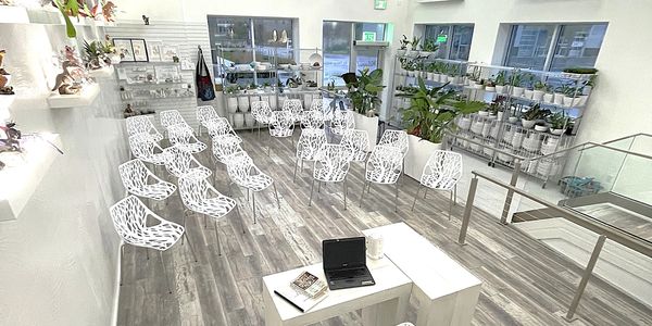 This exclusive event space rental features an 1800 square foot naturally lit, clean, and bright airy space. The main level of this Hamilton event venue is barrier-free, complete with two kitchenettes, two washrooms, and a 25-foot ceiling that includes an open mezzanine. The Zen vibe is enhanced by a nature-infused space, two-level windows, and a 'moonlit' glow for the evening - you'll see!